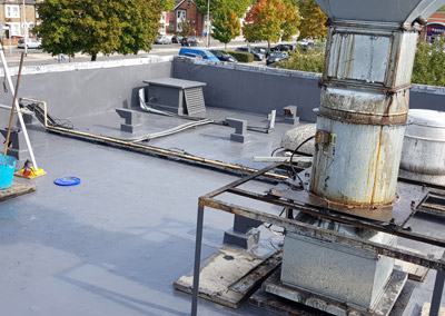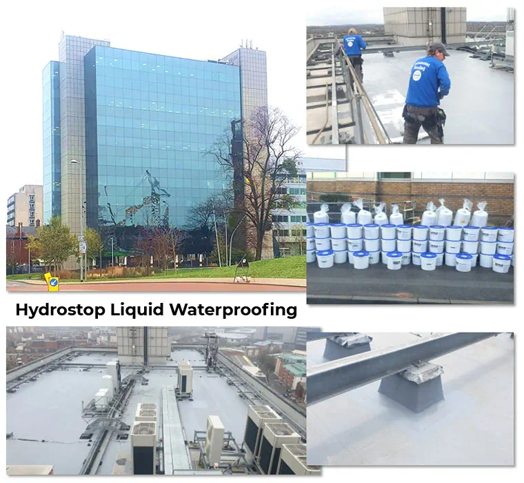 Given the state of the roof and installation issues, Paramount assessed a number of different solutions and recommended the application of The Hydrostop EU AH-25 liquid waterproofing system which is a “wet-on-wet”, cold applied liquid waterproofing product that’s fully reinforced with a polyester fabric. AH-25 is free of solvents and isocyanates, fast-curing, easy to apply, delivers superior performance and has significant advantages over conventional liquid roofing systems.
