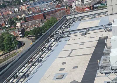 Telephone masts, HVAC ancillary services and suspended access window cleaning cradle perimeter track support fixings.