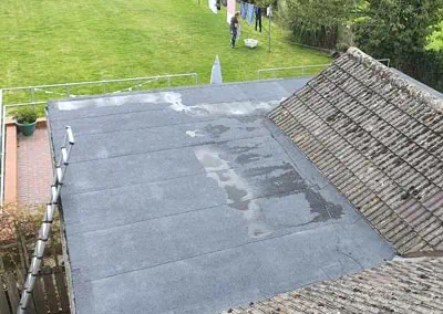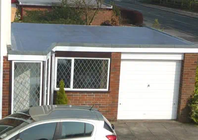 This semi-detached house in Kendal, has a single story concrete flat roof structure over an auxiliary room which the tenant had flagged with bad condensation issues. The roof was last recovered 23 years subsequently had several repairs carried out to it.