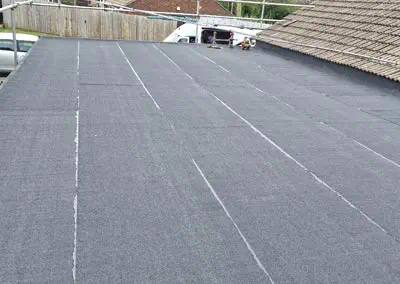 High Tensile Felt Roofing essentially this looks like the traditional “felt roof” but is incredibly durable. Unlike traditional felt, High Tensile will stretch and form with your roof. This is important as roofs tend to expand and contract with weather changes. Over the years traditional felts tear and leak. Built up felt roofing is one of our specialities.