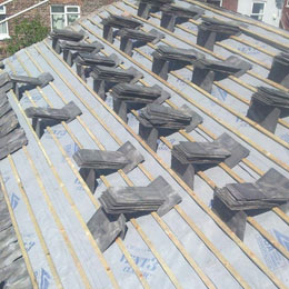 When refurbishing any slate or tile covered roof structure, all areas suspecting as being problematical are stripped back. Then defects are identified together with the causes of these defects. Then new or reclaimed materials chosen to match up with existing materials are utilised in the remedial reinstatement and repair work. Under normal circumstances if a roof supporting structure is sound, then the most appropriate action taken is the refurbishment of roof coverings and their fixings.